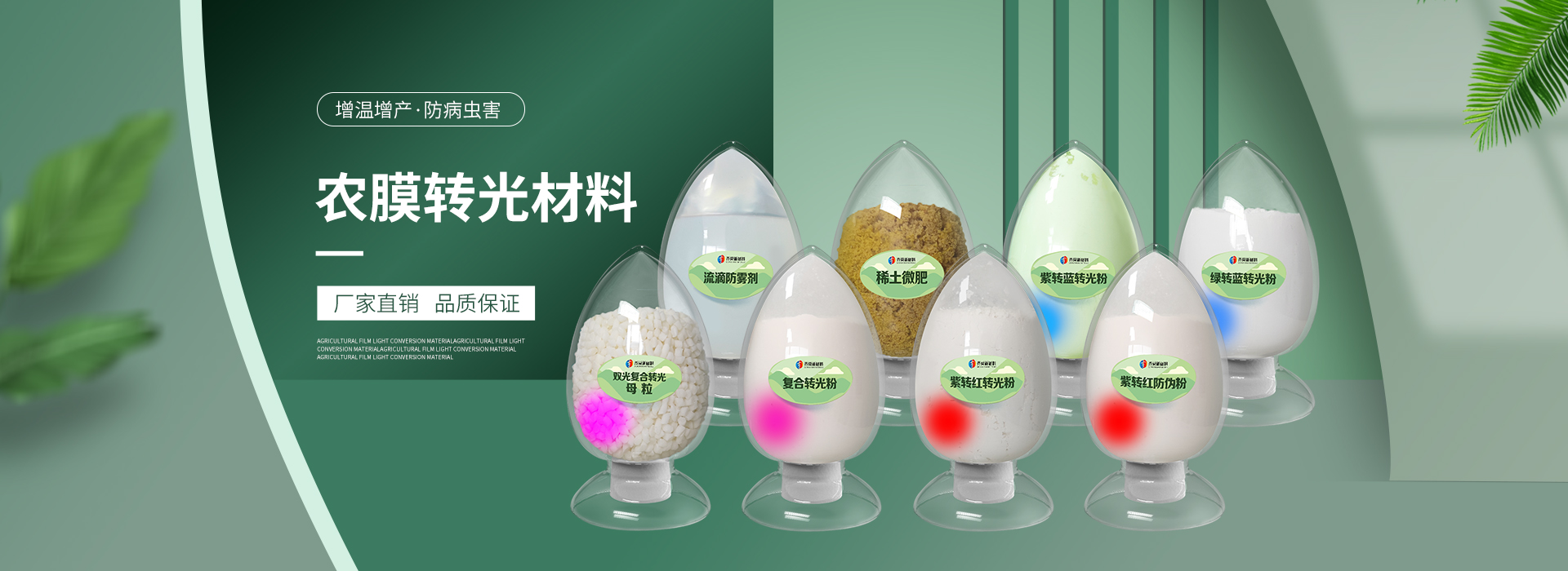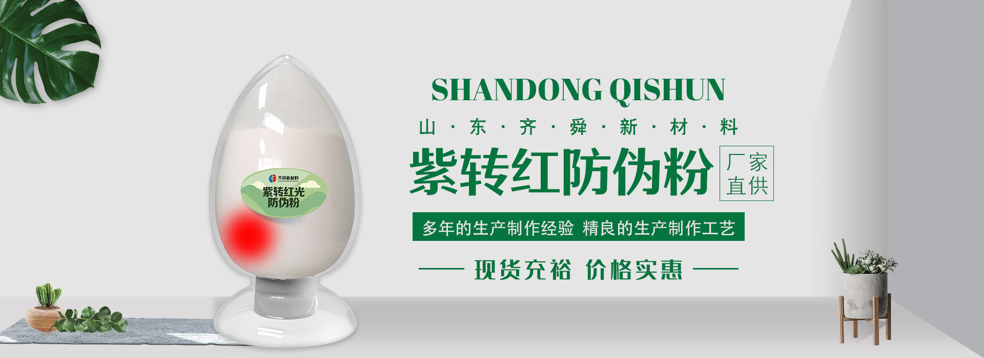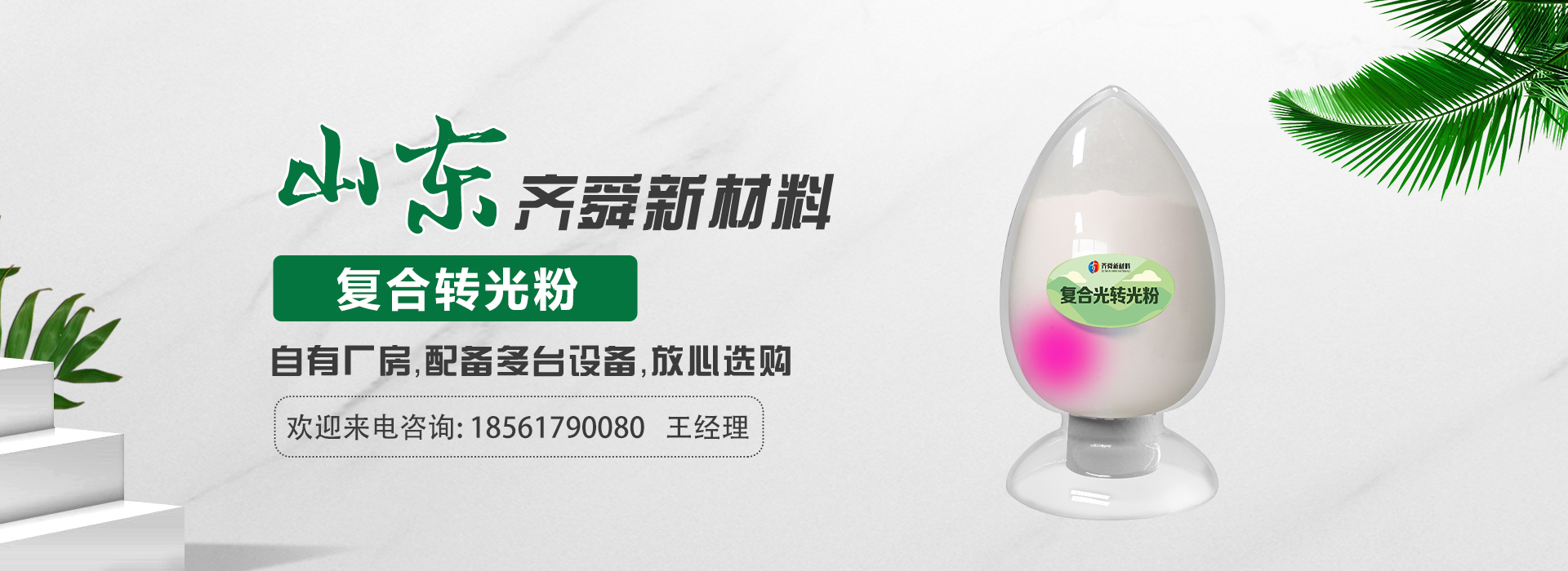 我公司前身為2011年成立的淄博舜明熒光科技有限公司。隨著公司的發(fā)展,廠址從淄博搬遷到青島,2020年5月公司重新注冊為山東齊舜新材料有限公司。公司注冊資本2000萬元,主要從事新材料研究和開發(fā)。目前主要產(chǎn)品包括:農(nóng)膜用轉(zhuǎn)光粉、轉(zhuǎn)光母粒以及轉(zhuǎn)光農(nóng)膜;農(nóng)膜用長效防霧流滴涂覆液;復合肥添加劑及葉面肥(稀土微肥);防偽粉;LED封裝熒光粉;夜光粉;太陽能光伏電池增效熒光粉;鋰電池正極材料等。